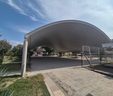 El arcotecho es un sistema de techado fabricado con lámina pintro o galvanizada en bobina. Destaca por su rápida instalación y por ser autosoportante, es decir, no requiere estructuras internas ni columnas intermedias, lo que lo convierte en una excelente opción para cubrir claros de gran tamaño utilizando únicamente el canalón de acero en los ejes. Además, ofrece una vida útil sobresaliente, con casos documentados de naves que superan los 50 años en funcionamiento.
